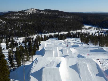Das Skigebiet Ruka bietet neben Finnlands größtem Snowpark auch weitere kleinere Parks und eine Superpipe.
