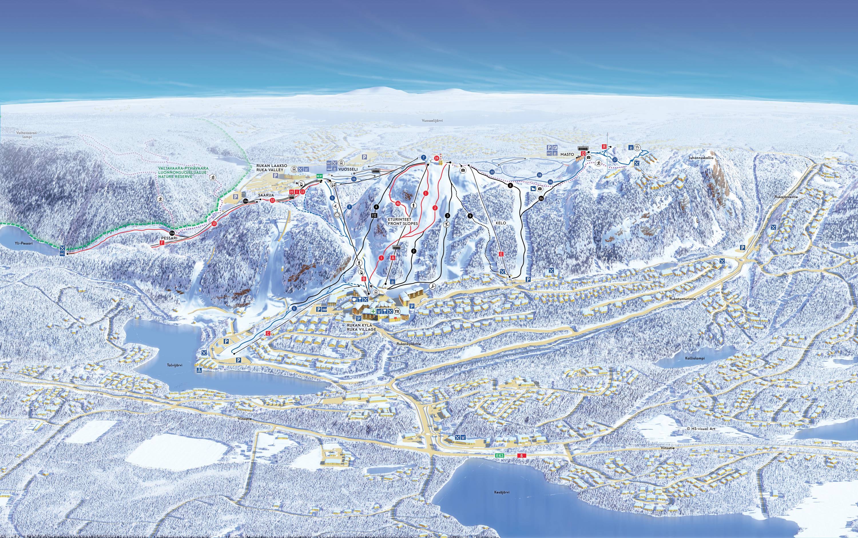 Ruka Village (0,1 km), Ruka Valley (0 km), Kuusamo (27 km)