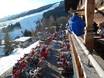 Unter dem Motto "Lässig. Chillig. Mittendrin." kann man in der EVA,Alm den Skitag ganz gediegen ausklingen lassen. Hier feiert man ohne auf den Bänken zu stehen. Man genießt einen guten Drink und lässt den Tag Revue passieren. Man kann dem bunten Treiben in der Fußgängerzone von Saalbach in Ruhe betrachten.