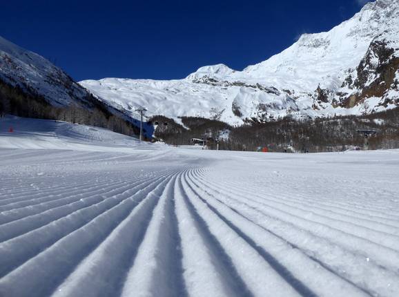 Trotz der enormen wetterbedingten Einflüsse am Mittelallalin sind die Pisten immer in einem sehr guten Zustand.