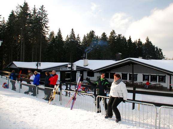 Der Sahnehang bzw. die Köhlerhütte an der Talstation wird zwar seit einiger Zeit verstärkt als Event-Location vermarktet, im Regelbetrieb geht es hier aber nach wie vor familiär zu. Einladend genug für ein längeres Verweilen nach dem Skifahren ist die Hütte aber allemal.