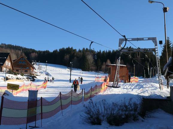 Das Skigebiet Samoty ist überschaubar. An der Talstation starten mehrere Lifte, die leichte Pisten erschließen.