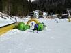 Der Nasse Park befindet sich direkt im Ort San Martino di Castrozza. Hier finden die Kleinen Förderbänder und einen Spielplatz. Direkt daneben erschließen die beiden Tellerlifte Prà Nasse ganz leichte Pisten. Zusätzlich gibt es eine Tubingbahn mit Förderband.