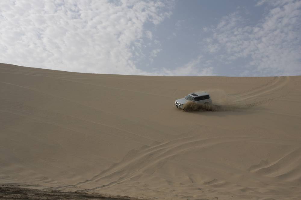 Die Anfahrt zur Sandwüste ist sehr einfach. Breite und gut ausgebaute Straßen führen direkt bis in die Wüste. Bevor es mit dem Jeeps in die Wüste geht, wird etwas Luft aus den Reifen gelassen.