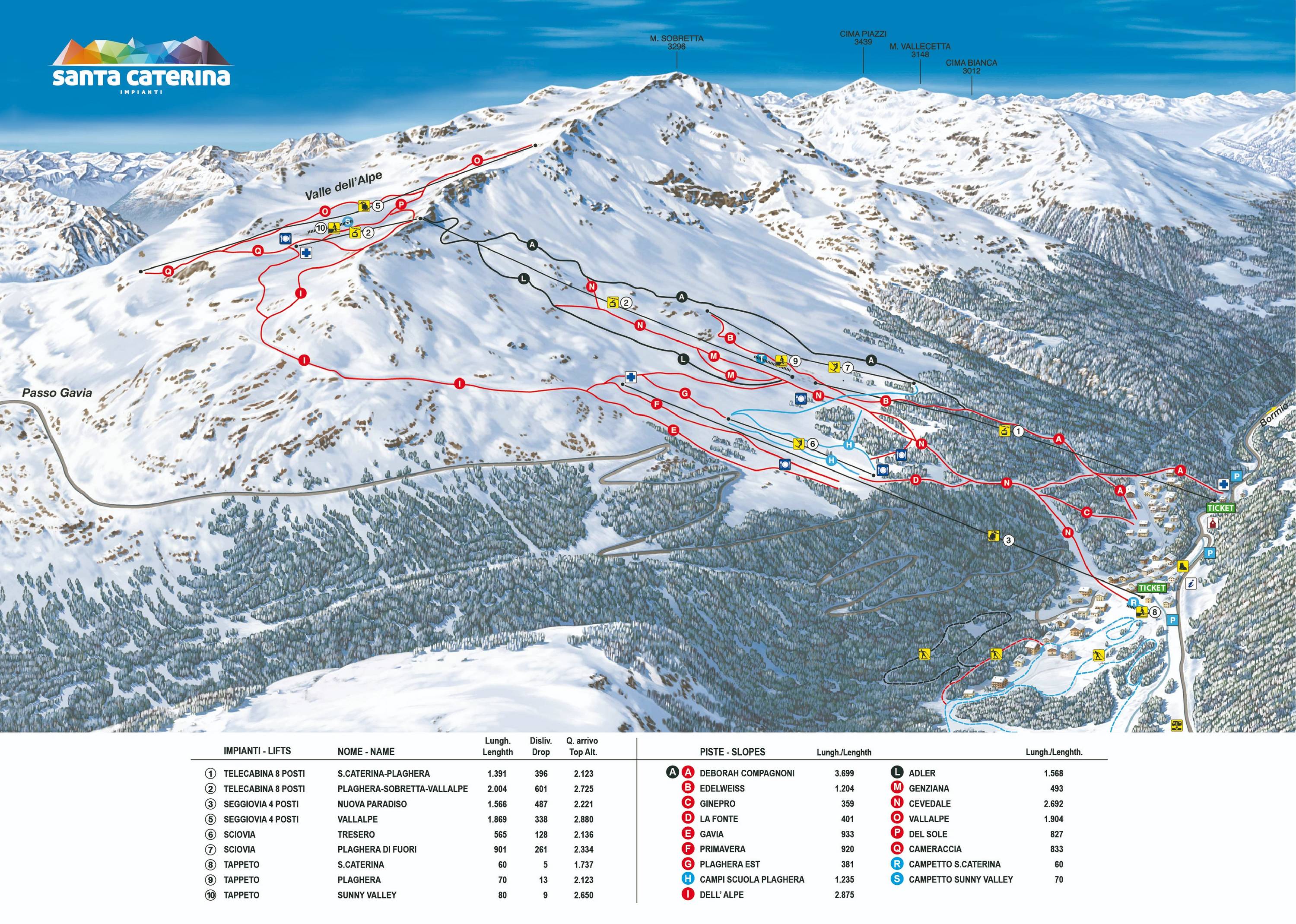Orientierung (Pistenplan, Informationstafeln, Ausschilderung) und Sicherheit im Skigebiet Santa Caterina Valfurva