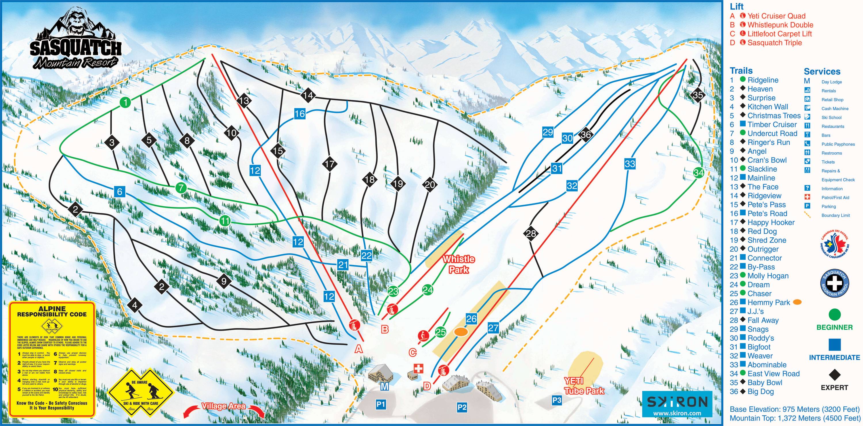 Pistenplan Sasquatch Mountain Saison 2024/2025