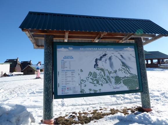 An der Talstation findet man einen Pistenplan vom Skigebiet Savin Kuk. Die Pisten sind teilweise ausgeschildert und markiert. Aktuelle Betriebsinformationen wären noch wünschenswert.