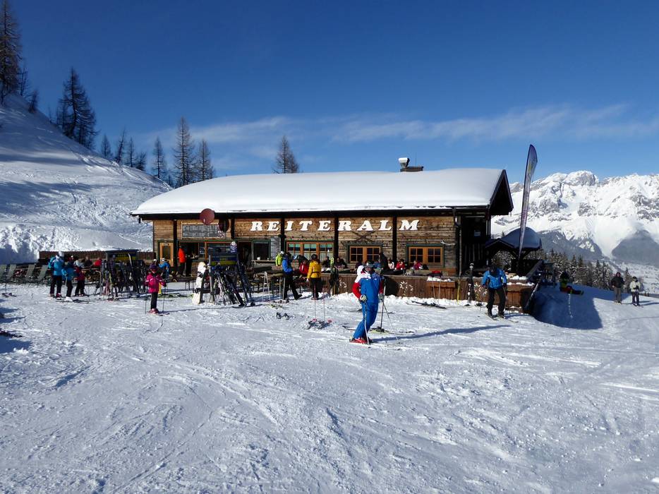 Die Schnepf-Alm ist das Restaurant des Hüttendorfs "Almwelt Austria" auf der Reiteralm und liegt trotzdem direkt an der Piste. Fleisch aus Österreich, Milchprodukte aus der Region und Gemüse von österreichischen Bio-Bauern werden hier in gemütlichem Ambiente serviert. An sonnigen Tagen können diese auch sehr lässig auf der Sonnenterrasse bestellt werden. Das Panorama-Wohnzimmer bietet uneingeschränkten Blick zum Dachsteinmassiv.