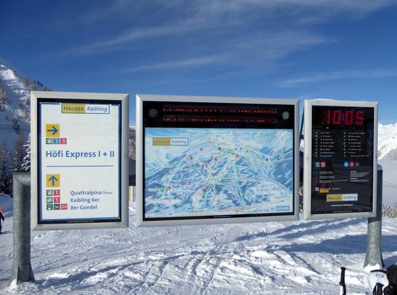In allen Skigebietsteilen stehen Echtzeitanzeigen mit Informationen zu den geöffneten Anlagen und Pisten zur Verfügung. Auf den Pisten finden die Wintersportler an allen Kreuzungen und Knotenpunkten zahlreiche Beschilderungen vor, die den Weg eindeutig leiten.