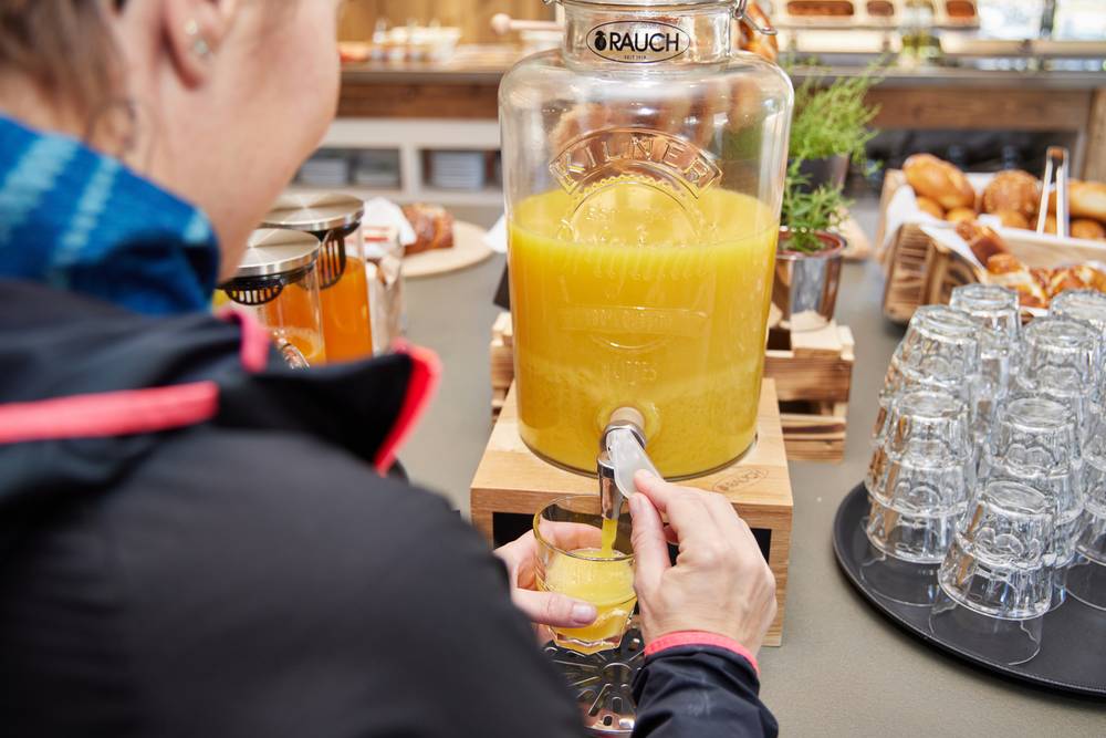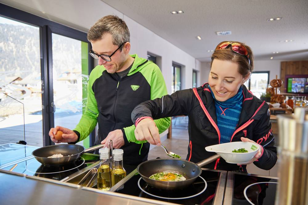 Beim vitalen Frühstücksbuffet mit Do-it-yourself Eierbratstation tankst Du Energie für den Tag, bevor es auf die Piste geht.