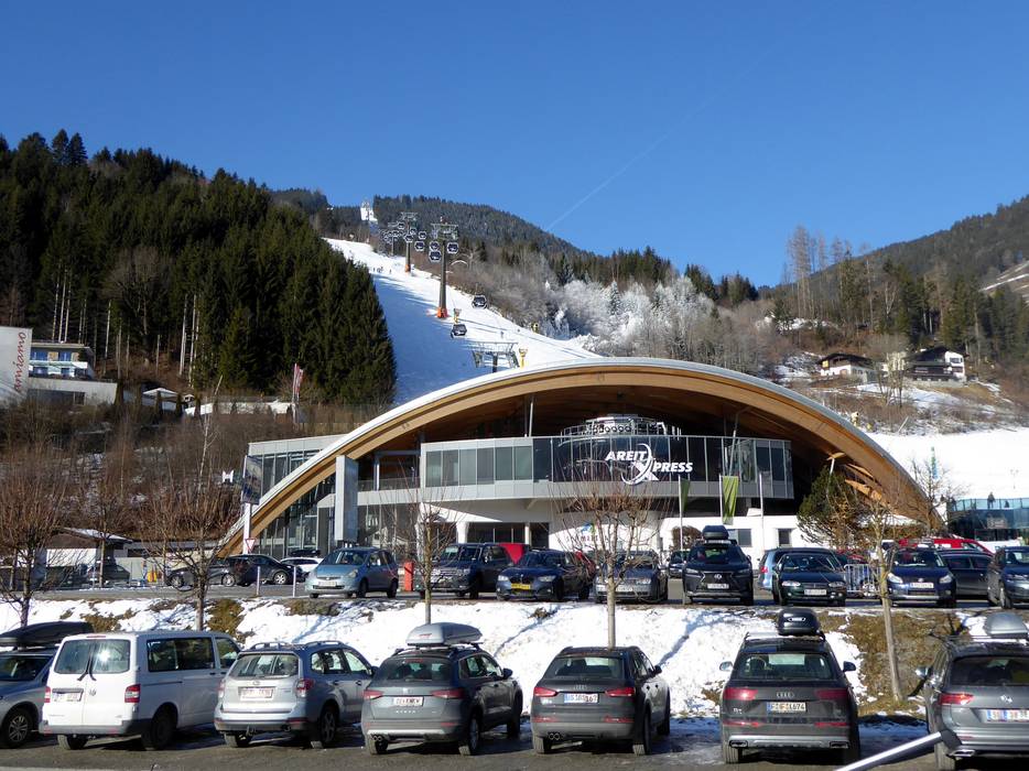 • Der nächste Parkplatz ist die Garage im Ort von Zell am See, einige Gehminuten von der Talstation entfernt.