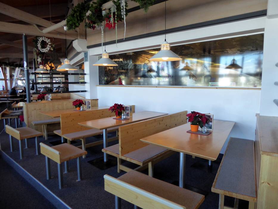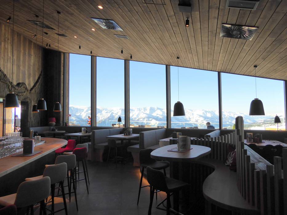 Das Panorama Restaurant ist die Drehscheibe im Skigebiet. Hier gibt es einen Selbstbedienungs- und Bedienbereich (Das Franzl) sowie gemütliche Stuben, große Sonnenterrassen, eine Loungebar und eine Après-Ski-Bar.