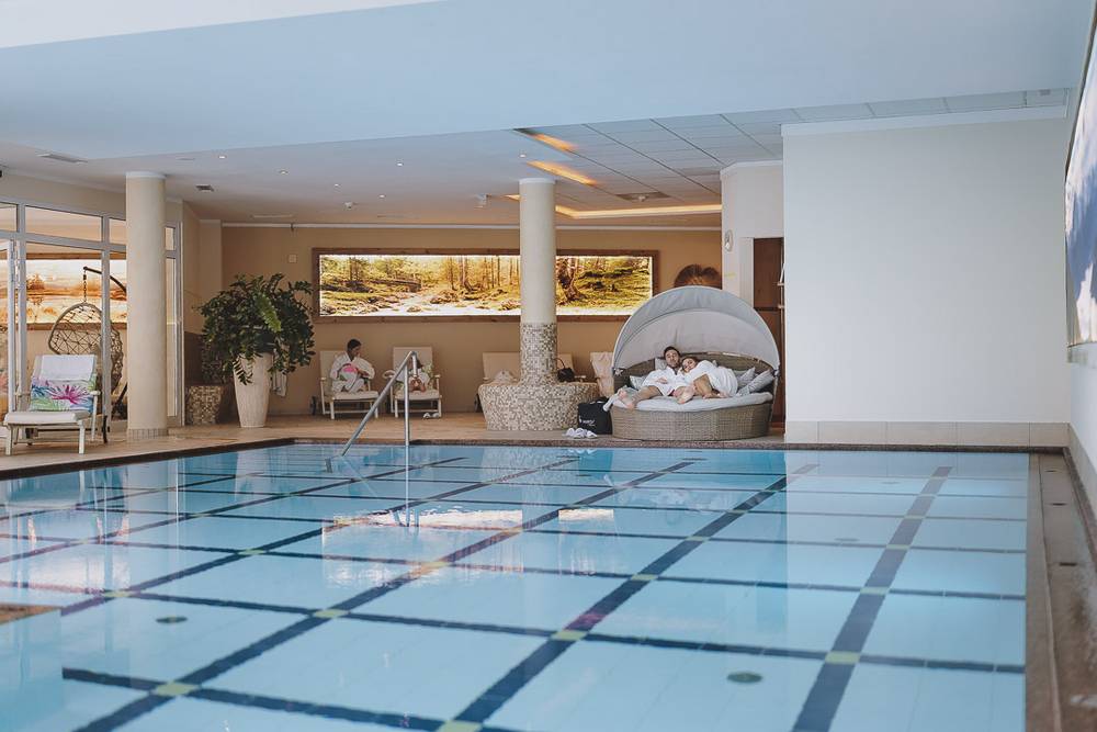 Im 1.300 m² Spa- und Wellnessbereich sollte man sich die Salzburger Saunahütte (90 °C) mit Blick auf die Berge und die Panorama-Wasserwelt inklusive Outdoorpool nicht entgehen lassen.