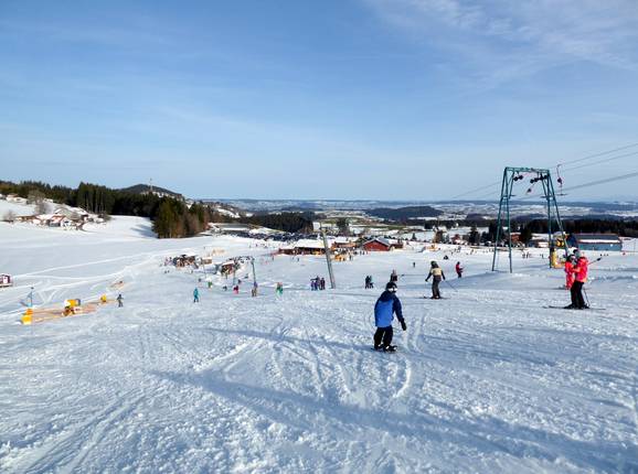 Das Skigebiet in Eschach an den Schwärzenliften bietet fast nur leichte und breite Pisten. Eine kurze und mittelschwere Piste rundet das Angebot ab.