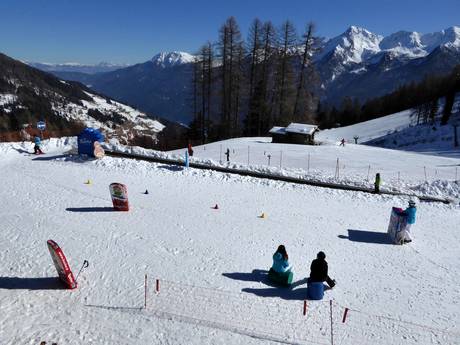 An der Bergstation der Doppelsesselbahn Breiteben befindet sich ein Kinderland mit Förderband. Die Skischule Ultental betreut hier Kinder und Anfänger. Lustige Figuen und ein kleiner Slalom werden nach Bedarf aufgebaut.