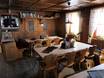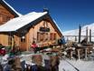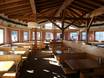 Die urige Hütte bietet eine gemütliche Stube mit Kachelofen, eine Sonnenterrasse und eine Après-Ski-Bar. Es werden typische Hüttengerichte und hochwertige Speisen serviert. Ideal für einen Einkehrschwung und eine Stärkung.