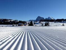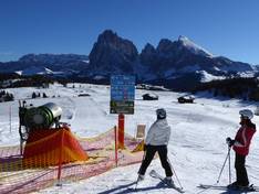Herrliches Panorama auf der Seiser Alm Piste an der Kombibahn Puflatsch mit Blick auf… Herrliches Panorama an der Sesselbahn Mezdi auf…