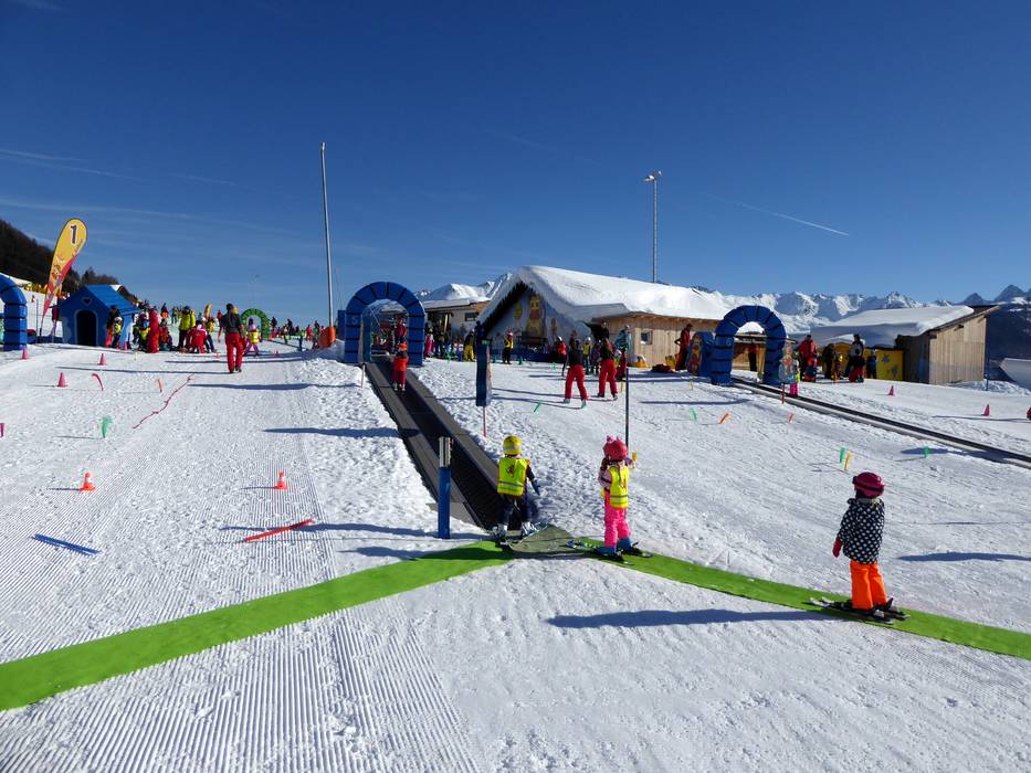 Die Kinderschneealm befindet sich direkt am Komperdell. Ein perfektes Areal für die Kleinen und wer schon sicher auf den Ski steht kann die Bärenpiste fahren oder mit der kindergesicherten Familienbahn Gampen bergwärts schweben.