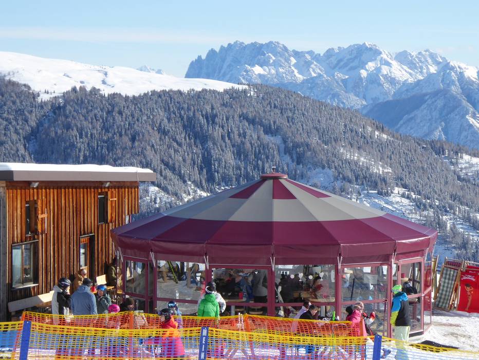 Die Schirmbar Sillian lädt direkt an der Talstation zum Après-Ski ein. Es herrscht eine gute Stimmung und Spaß auch wenn die Gondeln schon längst eingefahren sind.