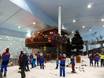Am Eingang zur Skihalle und mit Blick auf die Pisten