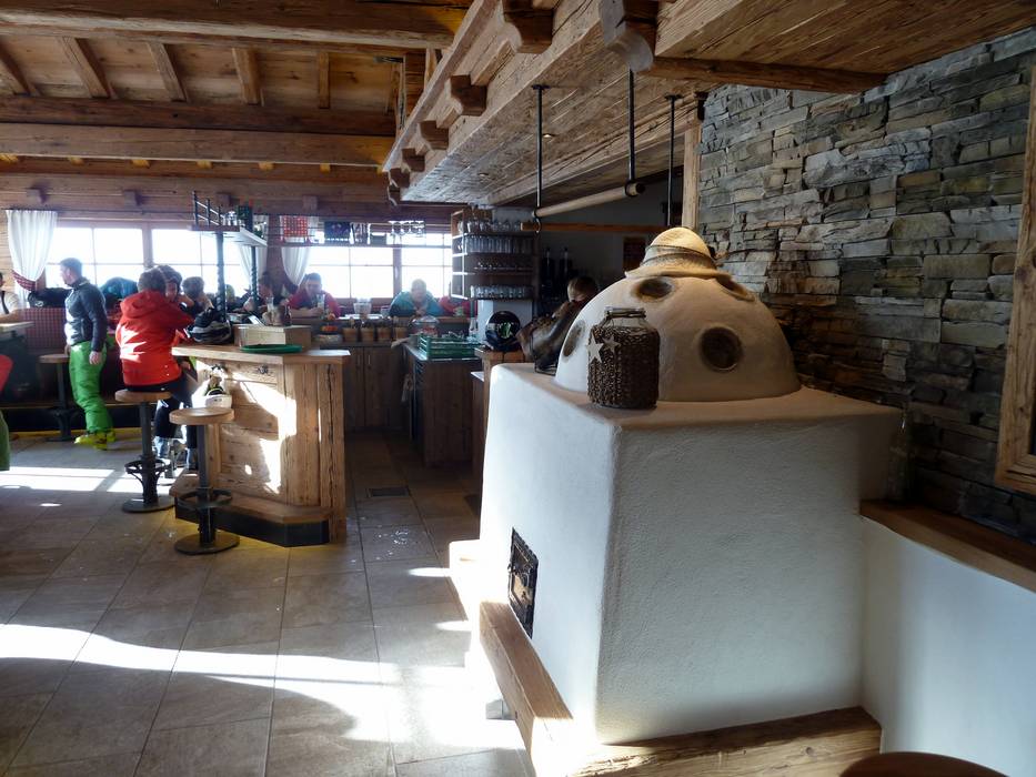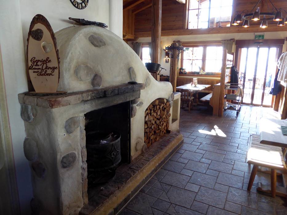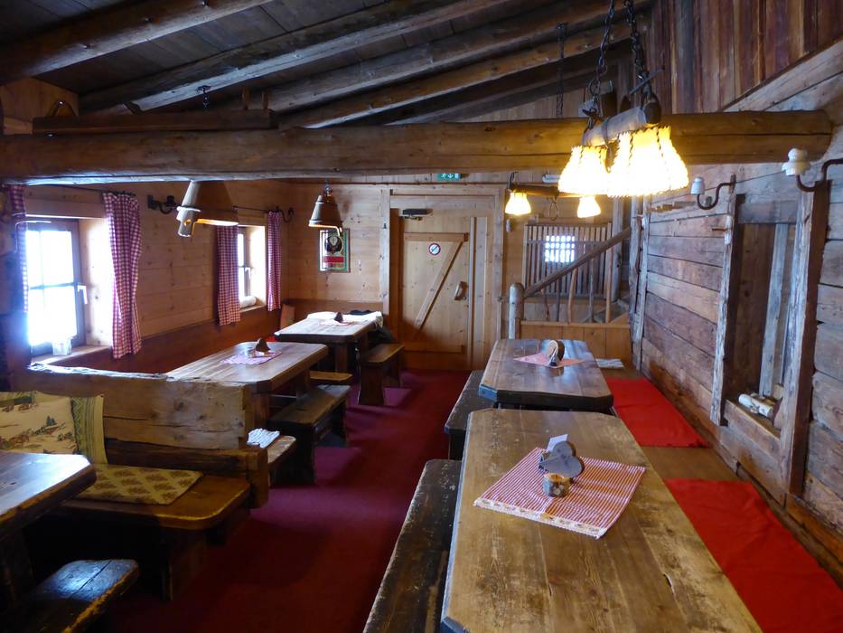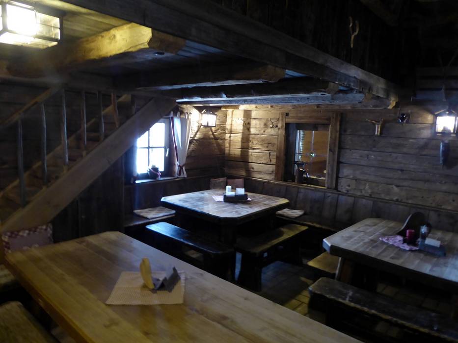 Die urige Hütte ist mit viel Holz im Tiroler Stil eingerichtet. An kalten Tagen wärmt ein Kachelofen. Es werden typische Tiroler Gerichte angeboten und bei schönem Wetter lockt die Sonnenterrasse mit Fellstühlen.