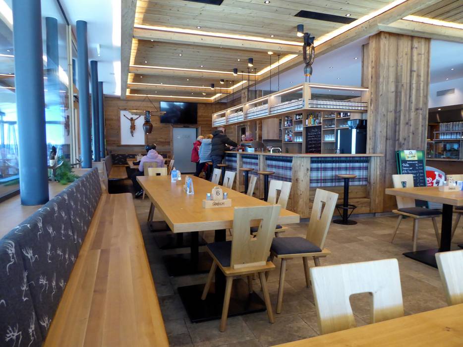 Das großzügige Restaurant bietet gutbürgerliche Speisen aus der heimischen Küche. Es gibt einen Selbstbedienungsbereich und einen schönen bedienten Bereich. Die Schatzbergalm wurde 2017 komplett umgebaut und sie glänzt mit Sonnenterasse, Wintergarten, Tagesbar, schönem Restaurantbereich und herrlichem Panoramablick auf das Tal sowie die umliegenden Berge.