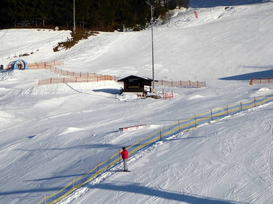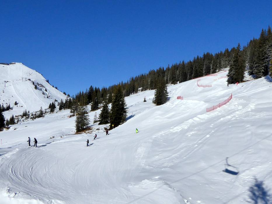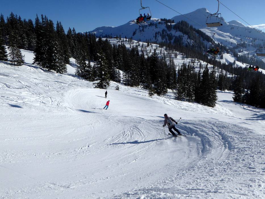 Talabfahrt 40 (blau) nach Söll, unterer Teil der Kandlerabfahrt - viele Freeride-/Tiefschneegebiete