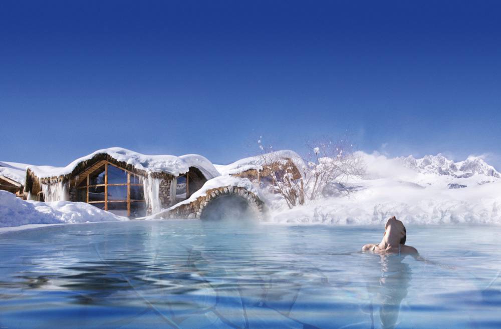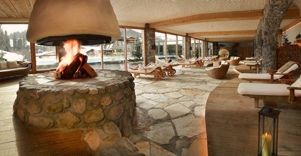 Der traumhafte Wellnessbereich bietet ein Felsen-Hallenbad, Whirlpool mit herrlichem Blick auf den Wilden Kaiser, "Felsen-Sauna" mit einem wunderschönen Meerwasser-Aquarium mit farbenfrohem Korallenriff, Beautyfarm, Massage- und Bäderabteilung, Ayurveda. Die Anwendungen wie Massagen und Kosmetikbehandlungen finden in einem traumhaften Ambiente statt und werden von sehr netten kompetenten Mitarbeitern ausgeführt. Für die kosmetischen Pflegeanwendungen werden ausschließlich exklusive Produkte von z.B.: Molecular Cosmetics by Dr. Barbara Sturm, !QMS Dr. Med. Eerich Schulte, Klapp Cosmetics, Dr. Spiller Biocosmetics, Ligne St. Barth, Regulatpro ® Hyaluron von Dr. Niedermaier Pharma und Alpienne verwendet.
