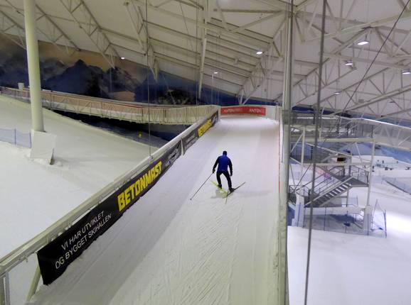 Die Skihalle SNØ bietet sogar eine Loipe. Die Langlaufstrecke ist rund 1 Kilometer lang und für Anfänger und Profis gleichermaßen geeignet. Sie beginnt im Zwischengeschoss, rund 20 Meter über dem Boden. Die Strecke windet sich mit leichten Steigungen und sorgt so durchgehend für gute Abwechslung. Die Loipe ist rund 5 Meter breit, hat einen Höhenunterschied von 32 Metern und wird für klassisch und skating präpariert.
