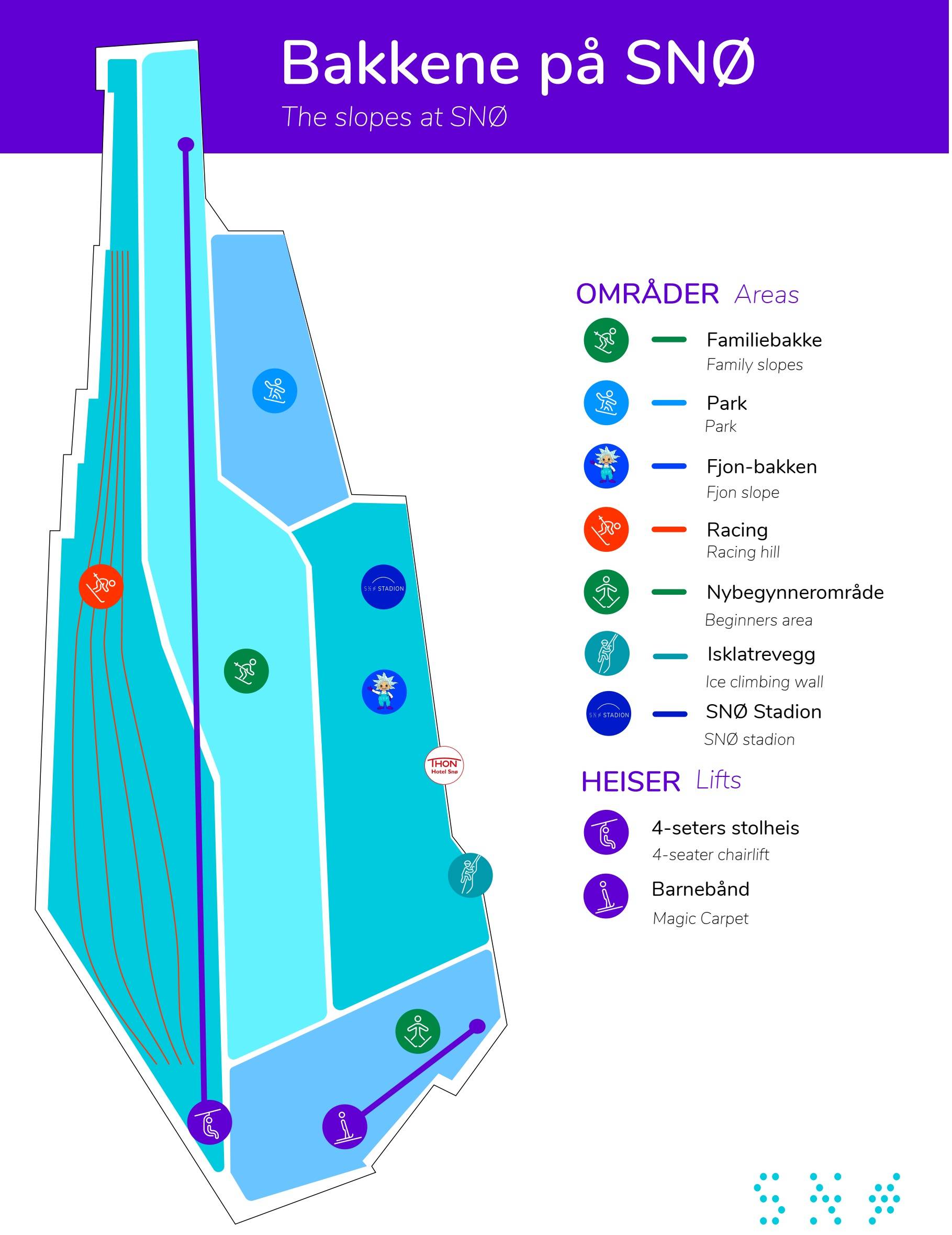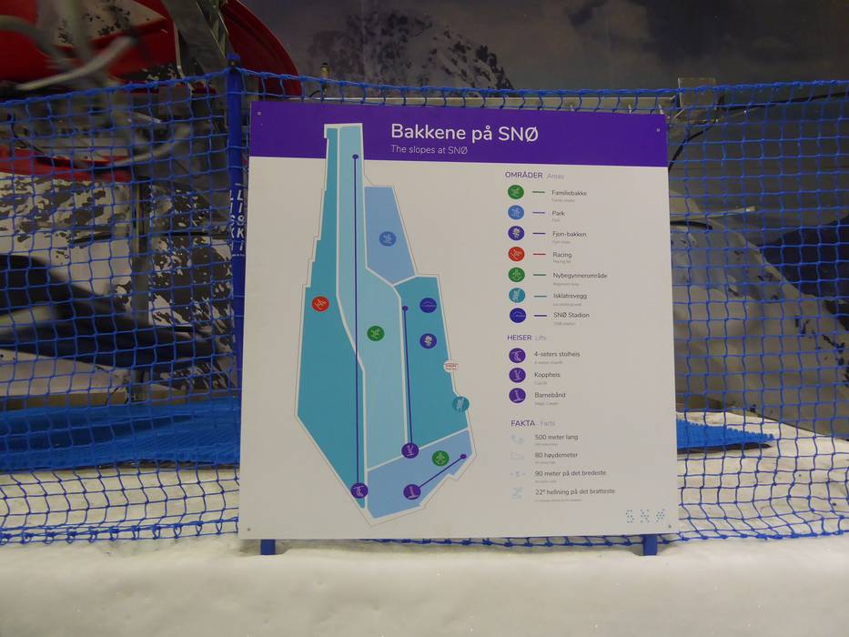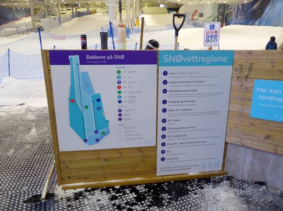 Es gibt einen schemenhafen Pistenplan mit allen Informationen rund um die Skihalle SNØ.