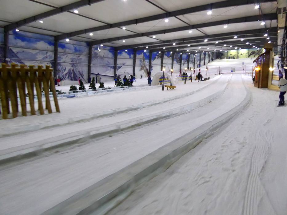 Das Winter Wonderland ist ein familienfreundliches Alpendorf mit schneebedeckten Bäumen und Aktivitäten, wie Rodelbahn und Snowtubing. Es ist ein Spaß für die ganze Familie und befindet sich im unteren Bereich der Skihalle.