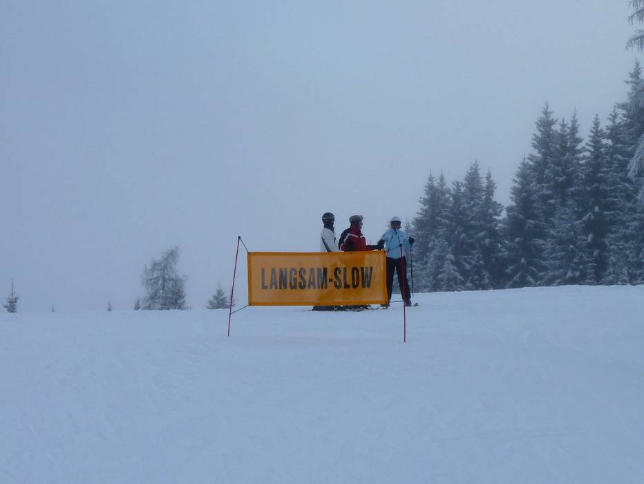 Im Skigebiet ist die Ausschilderung zwar nicht ganz einheitlich, aber alle Richtungen und Ziele werden auch zwischen den verschiedenen Sektoren klar markiert. Im Tal und an einigen Bergstationen gibt es auch elektronische Tafeln mit Echtzeitinformationen. An den Liften sind überall gut sichtbar die Betriebszeiten angeschrieben und eine Uhr, meist sogar ein Thermometer, angebracht. Gefahrenstellen wie Kreuzungen und das Ende der Piste werden mit Hinweistafeln markiert und an unübersichtlichen Stellen wird mit auffälligen, großformatigen Gefahrenhinweisen zu angepasster Geschwindigkeit aufgefordert.
