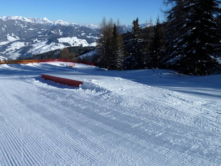 Der große und sehr gut gepflegte Snowpark Alpendorf ist mit der Hirschkogelbahn ideal erreichbar. Die vielen Obstacles in verschiedenen Schwierigkeitsgraden sind mit großzügigem Abstand ins Gelände integriert. Die Easy und die Medium/Pro Line sind gut zu erkennen, so dass jeder gleich seine Line findet. Bei der Gestaltung wurde ein Schwerpunkt auf Sicherheit gesetzt.