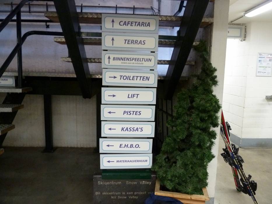 Am Eingang der Skihalle findet man Hinweisschilder. Ansonsten gibt es keine Ausschilderung in der Skihalle.