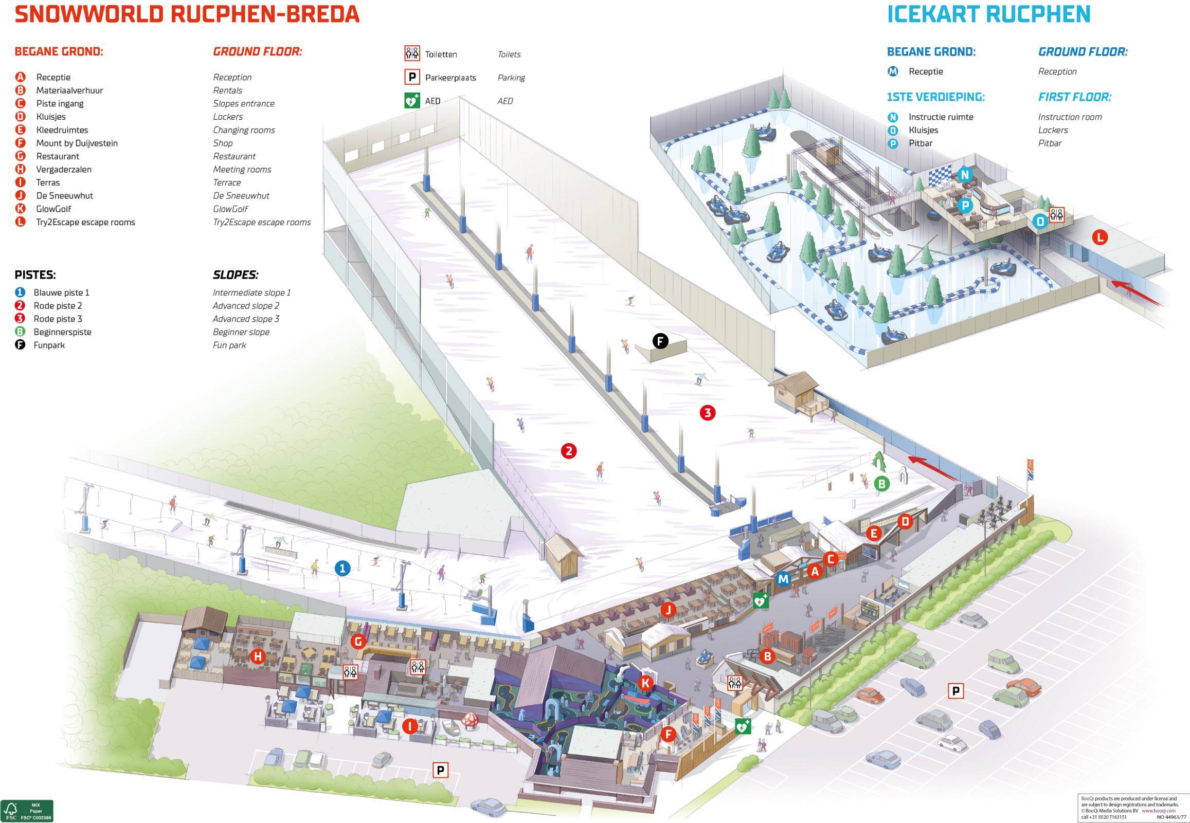 Orientierung (Pistenplan, Informationstafeln, Ausschilderung) und Sicherheit im Skigebiet SnowWorld Rucphen