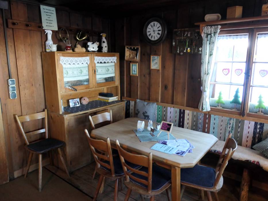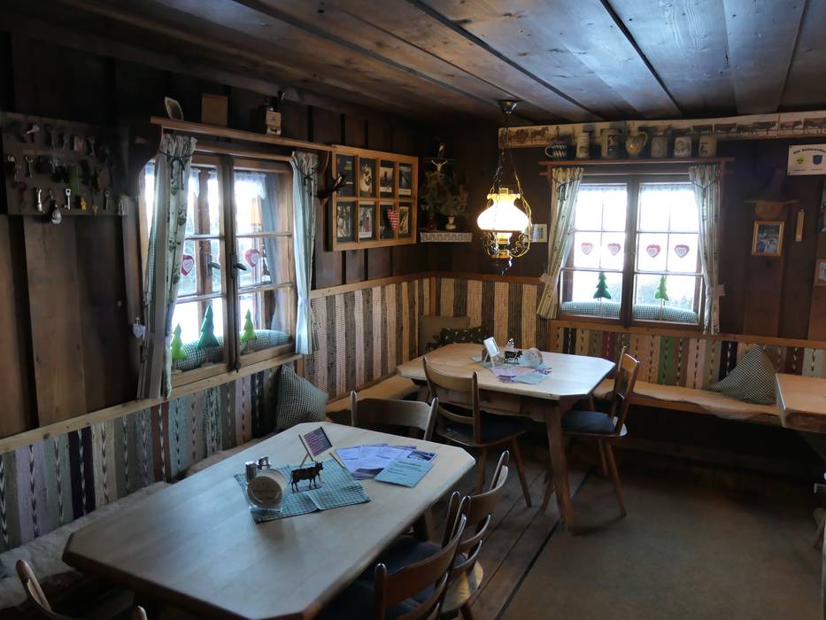 Urige und gemütliche Hütte mit Allgäuer Spezialitäten. Man kann direkt zusehen wie die Speisen zubereitet werden. Käse und Fleisch kommen von den eigenen heimischen Beständen. Von der Sonnenterrasse hat man einen herrlichen Blick ins Tal.