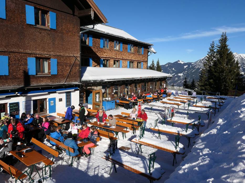 Im Skigebiet an den Berg- und Talstationen gibt es zahlreiche Hütten und Bergrestaurants. Die Atmosphäre ist urig und gemütlich und es werden Allgäuer Spezialitäten serviert.