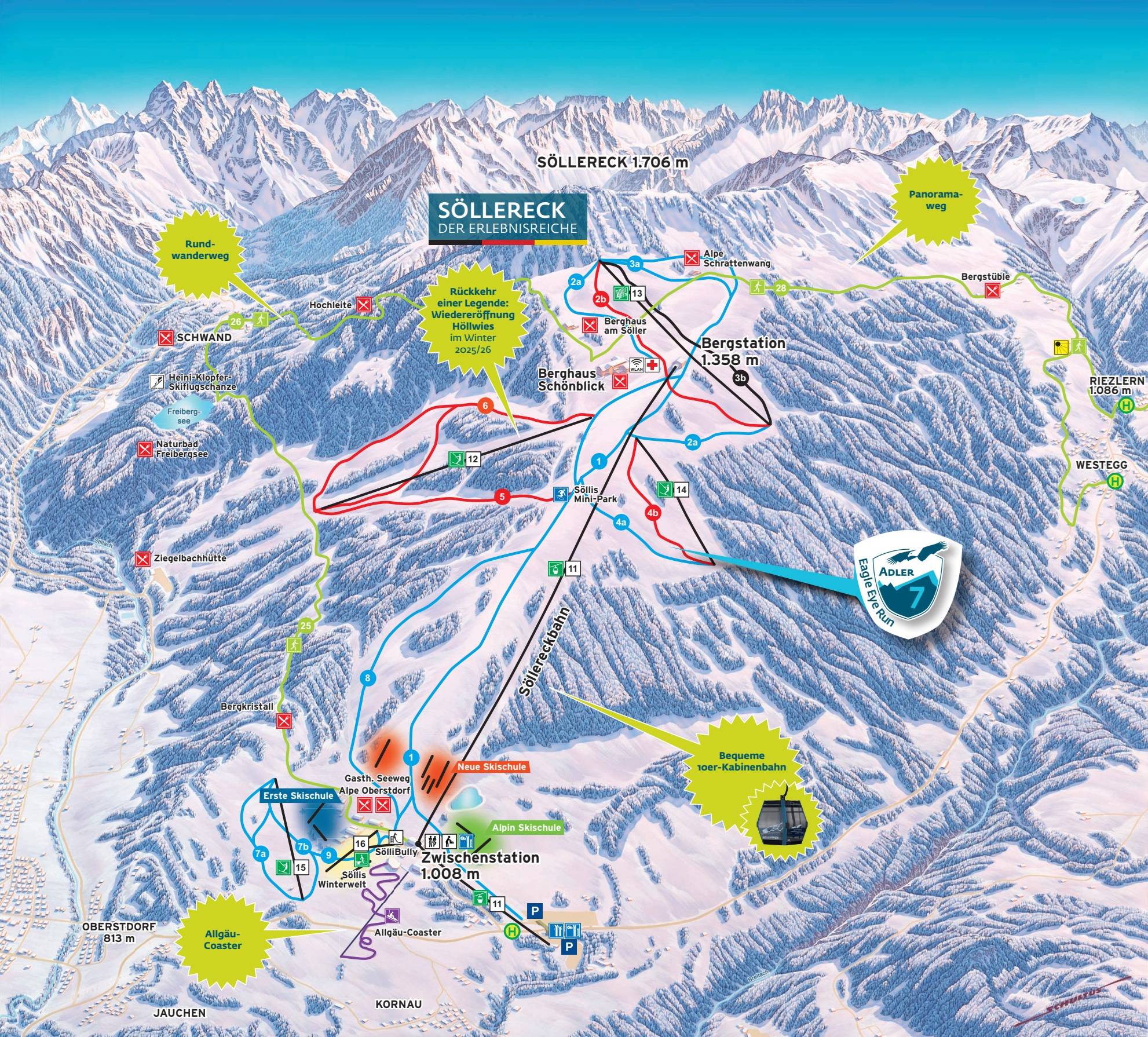 Pistenplan vom Skigebiet Söllereck – Oberstdorf