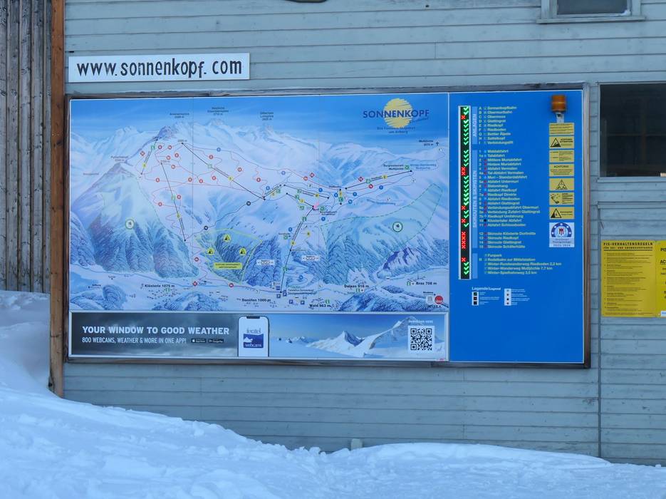 Orientierung (Pistenplan, Informationstafeln, Ausschilderung) und Sicherheit im Skigebiet Sonnenkopf – Klösterle
