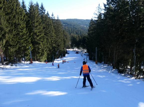 Komplette Anfänger starten ideal am Förderband im Kinderland. Leichte Pisten an Schlepp- und Tellerliften eignen sich perfekt zur Steigerung, fortgeschrittene Anfänger meistern auch die Sesselbahn. Skikurse bietet die örtliche Skischule an.
