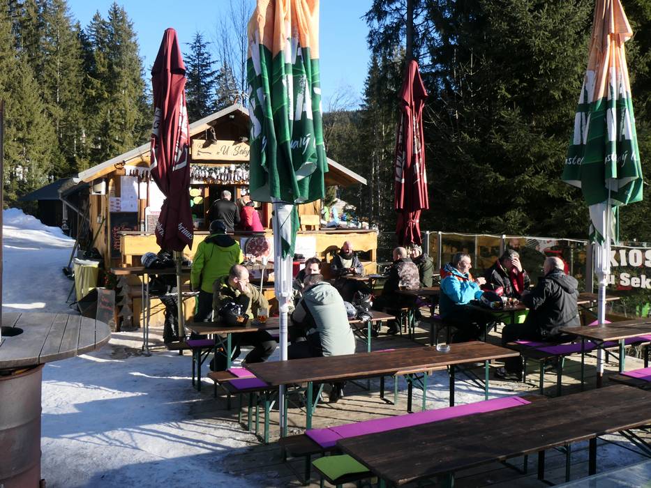 In der Ski Bar Špičák lässt sich der Skitag beim Après-Ski schön ausklingen. Aber auch die Hütten und Kioske laden zu einer entspannten Pause ein.