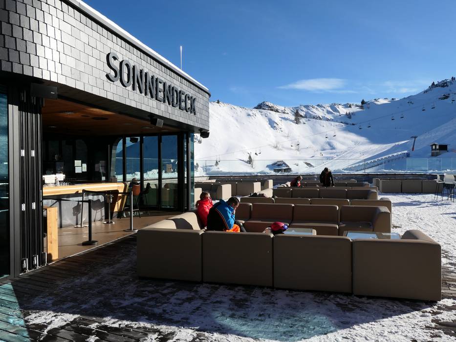 Das Sonnendeck befindet sich auf der großen Sonnenterrasse mit herrlichem Blick auf die Pisten. Im Sonnendeck kann man einen gepflegten Drink nehmen und erhält Snacks. Die gemütlichen Lounge-Chairs laden zum Verweilen ein.