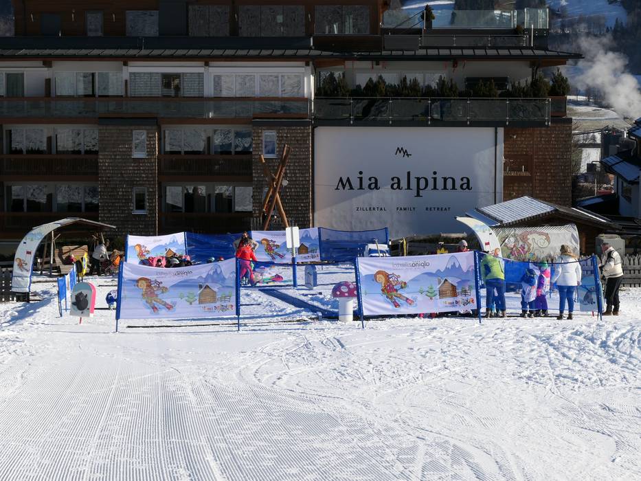 Direkt beim Familienhotel Mia Alpina unterhalb der Talstation der Spieljochbahn gibt es ein kleines Kinderland der Skischule skiCHECK. Unter dem Motto "Ski and Smile" lernen die Kleinen an einem Förderband die ersten Schwünge auf Skiern.