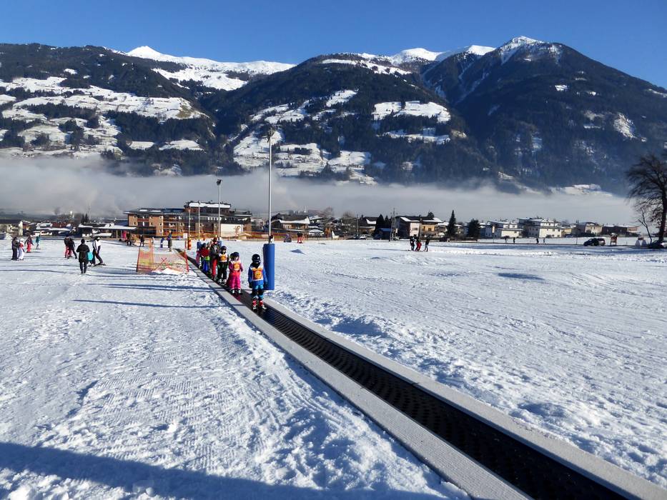 Leicht unterhalb der Talstation der Spieljochbahn im Ort Fügen liegt dieses große Übungsareal. Kinder lernen das Skifahren am Förderband. Mehrere Skischulen üben mit den Kleinen im Kinderpark. Eine Wellenbahn rundet das Angebot ab.