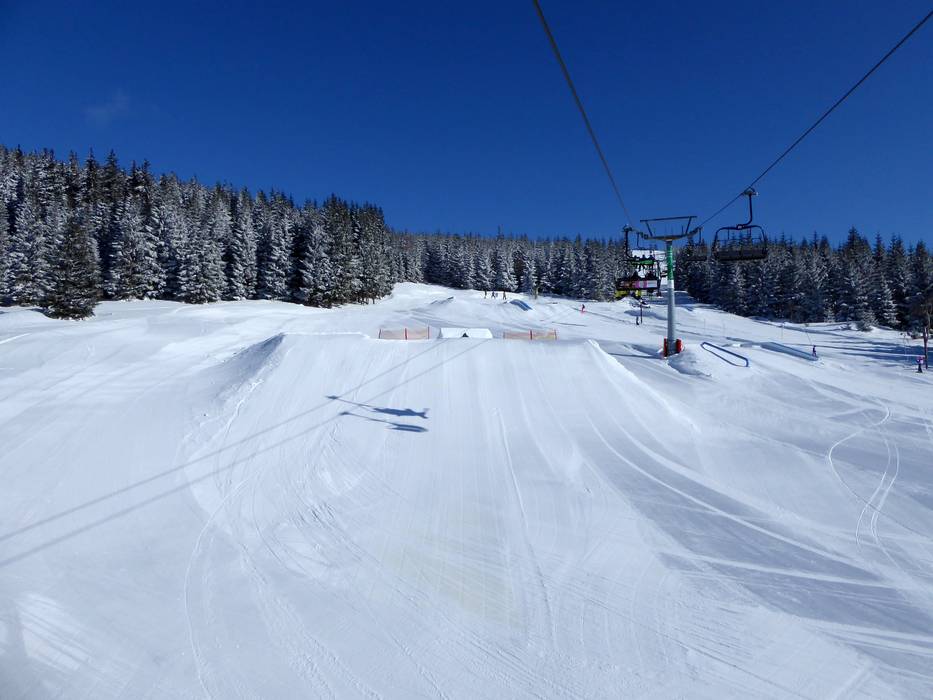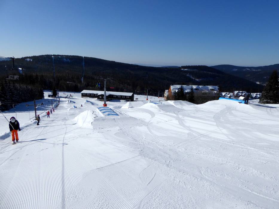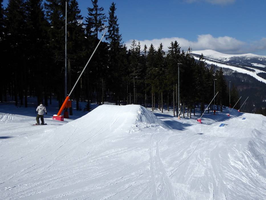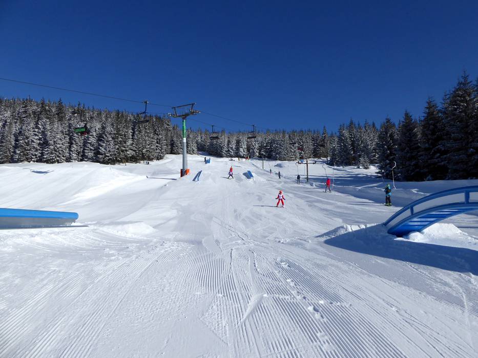 Die Spaßpiste Funtrack Hromovka befindet sich an der Bergstation der gleichnamigen Vierersesselbahn. Bei den leichten Kickern, Rails, Boxen und Wellen erfreut sich die ganze Familie.