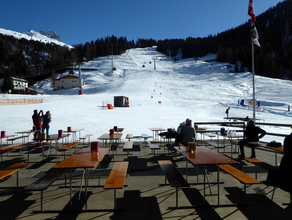 Das Selbstbedienungsrestaurant liegt mitten in der Tambo Bergwelt. Von der großen Sonnenterrasse hat man einen herrlichen Blick auf den Piz Tambo. Es wird typisches Skifahreressen angeboten.