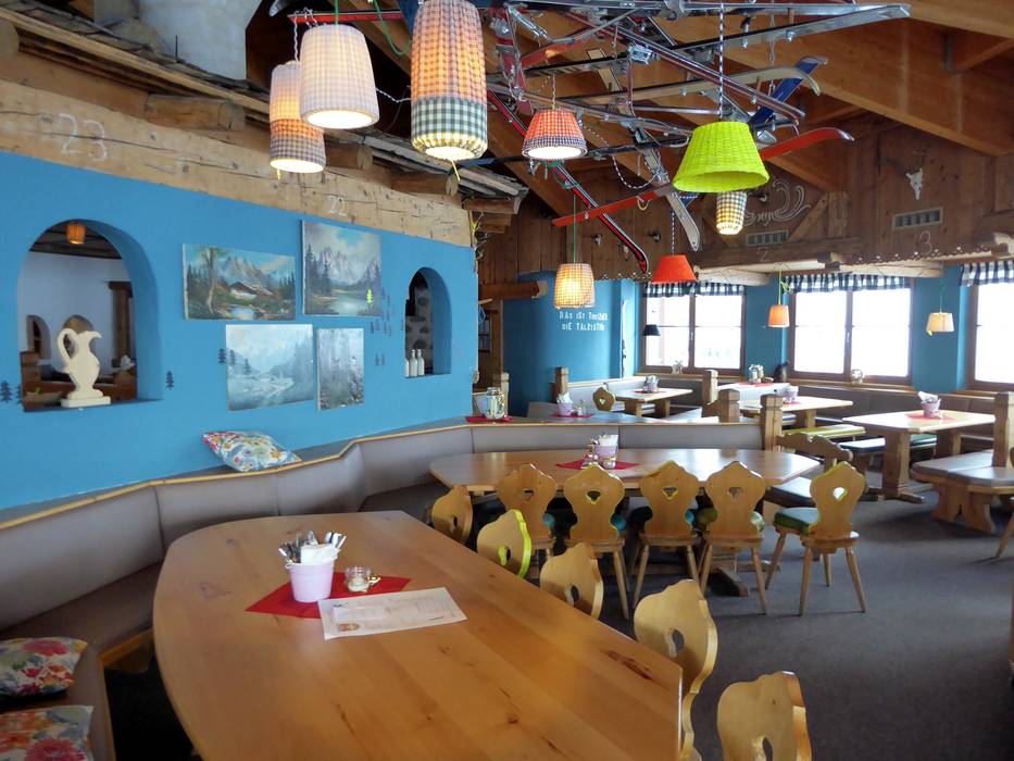 Das Skirestaurant Weitblick bietet einen Selbstbedienungsbereich und einen bedienten Bereich sowie eine große Sonnenterrasse.