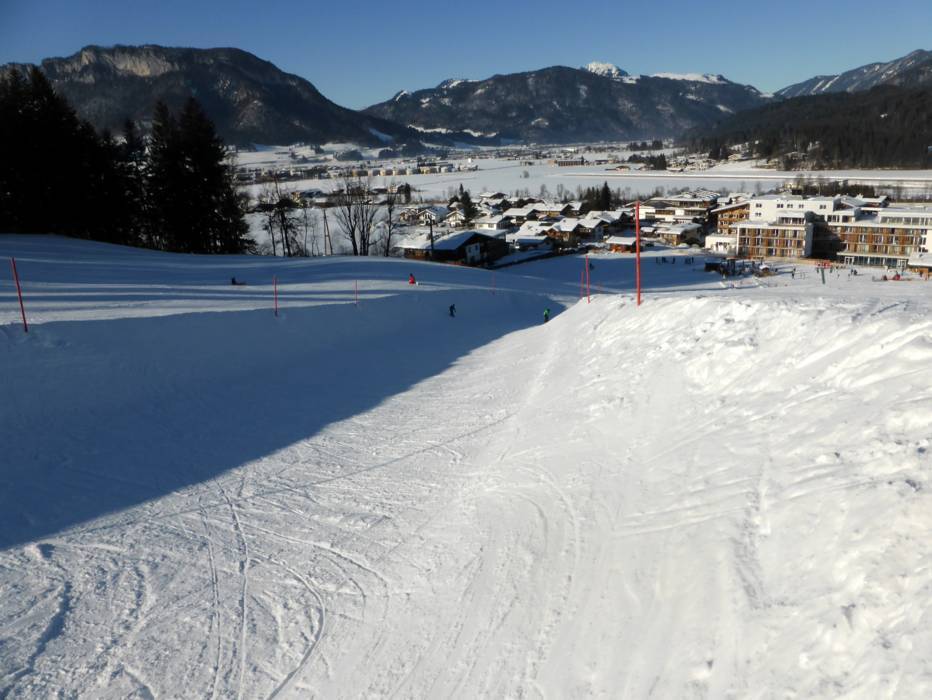 Der 1.604 Meter hohe Harschbichl ist der höchste Punkt im Skigebiet St. Johann in Tirol, dem familienfreundlichen Wintersportgebiet in den Kitzbüheler Alpen. Die Kleinen werden vom Schneemann Valle unterhalten. Auf die Großen warten hervorragend präparierte Abfahrten zum sportlichen Skifahren und eine ganze Reihe uriger und auch erstklassiger Einkehrmöglichkeiten – darunter mit der Angerer Alm die älteste Hütte am Kitzbüheler Horn.