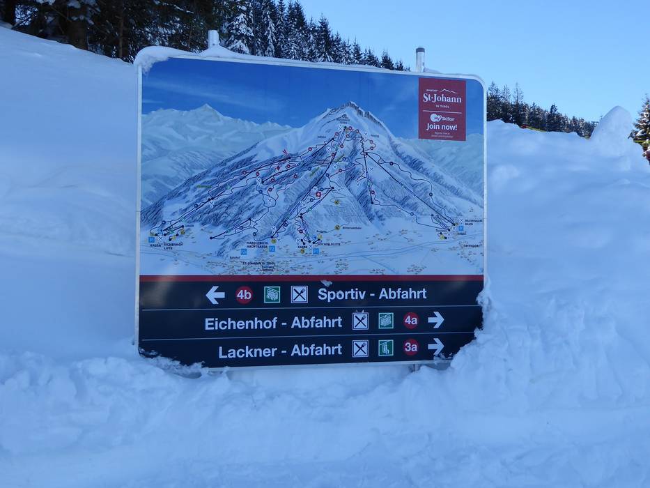 Der Pistenplan stellt das Skigebiet St. Johann in Tirol gut und übersichtlich dar. Lobenswert sind alle eingezeichneten Hütten. Weitere Höhenangaben und Informationen zu den Liftanlagen wären noch wünschenswert.