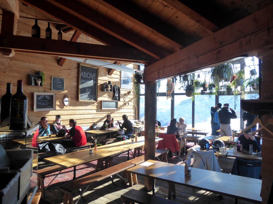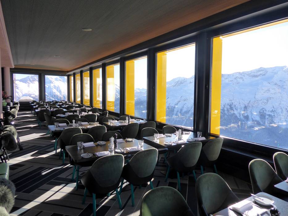 Gourmetrestaurant der höheren Preisklasse mit atemberaubenden Blick auf die Engadiner Berge. Die Sonnenterrasse und eine Bar laden die Gäste des Mountain Clubs zum Verweilen ein. Die Champagner- und Weinkarte lässt keine Wünsche offen.